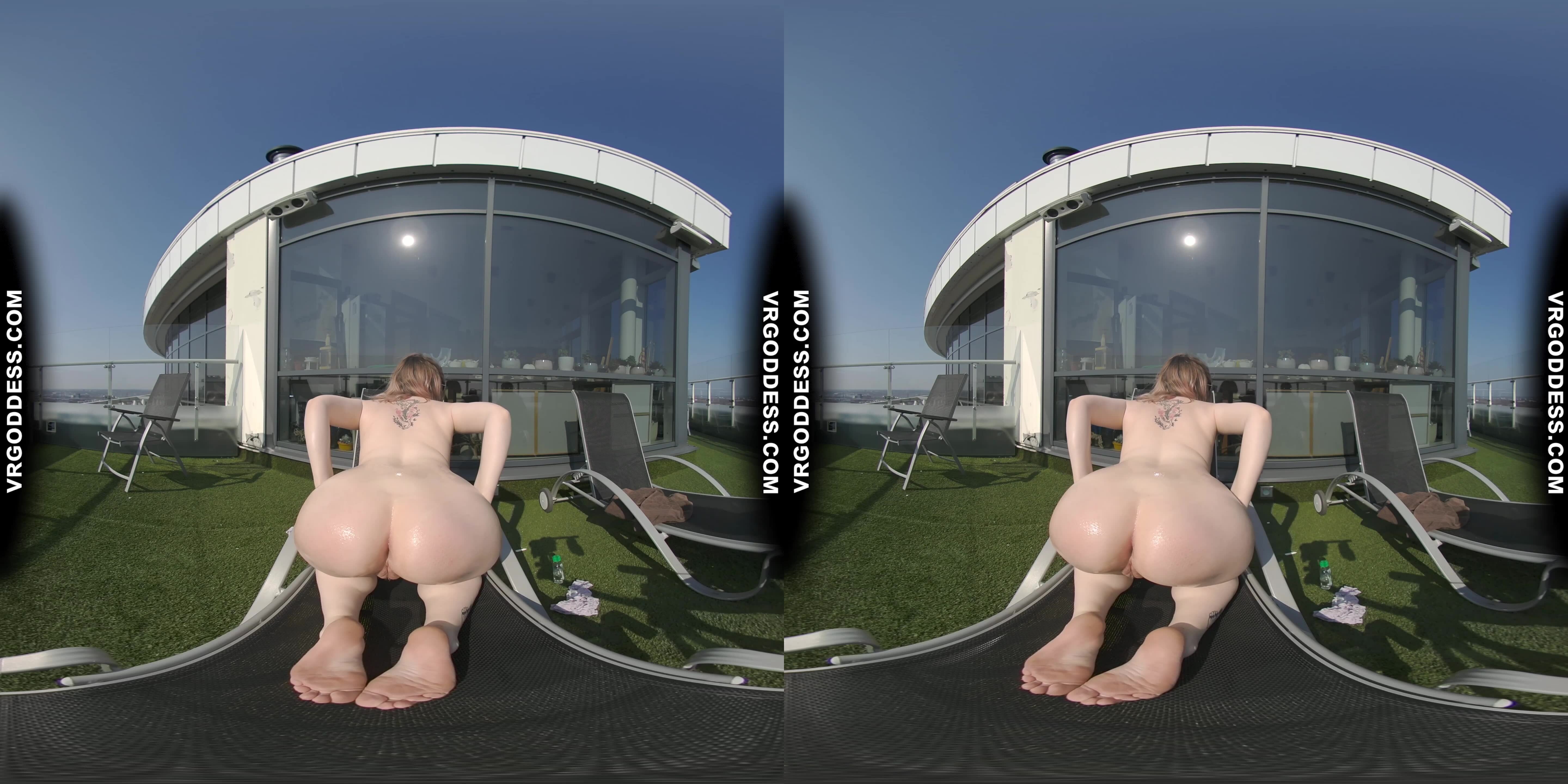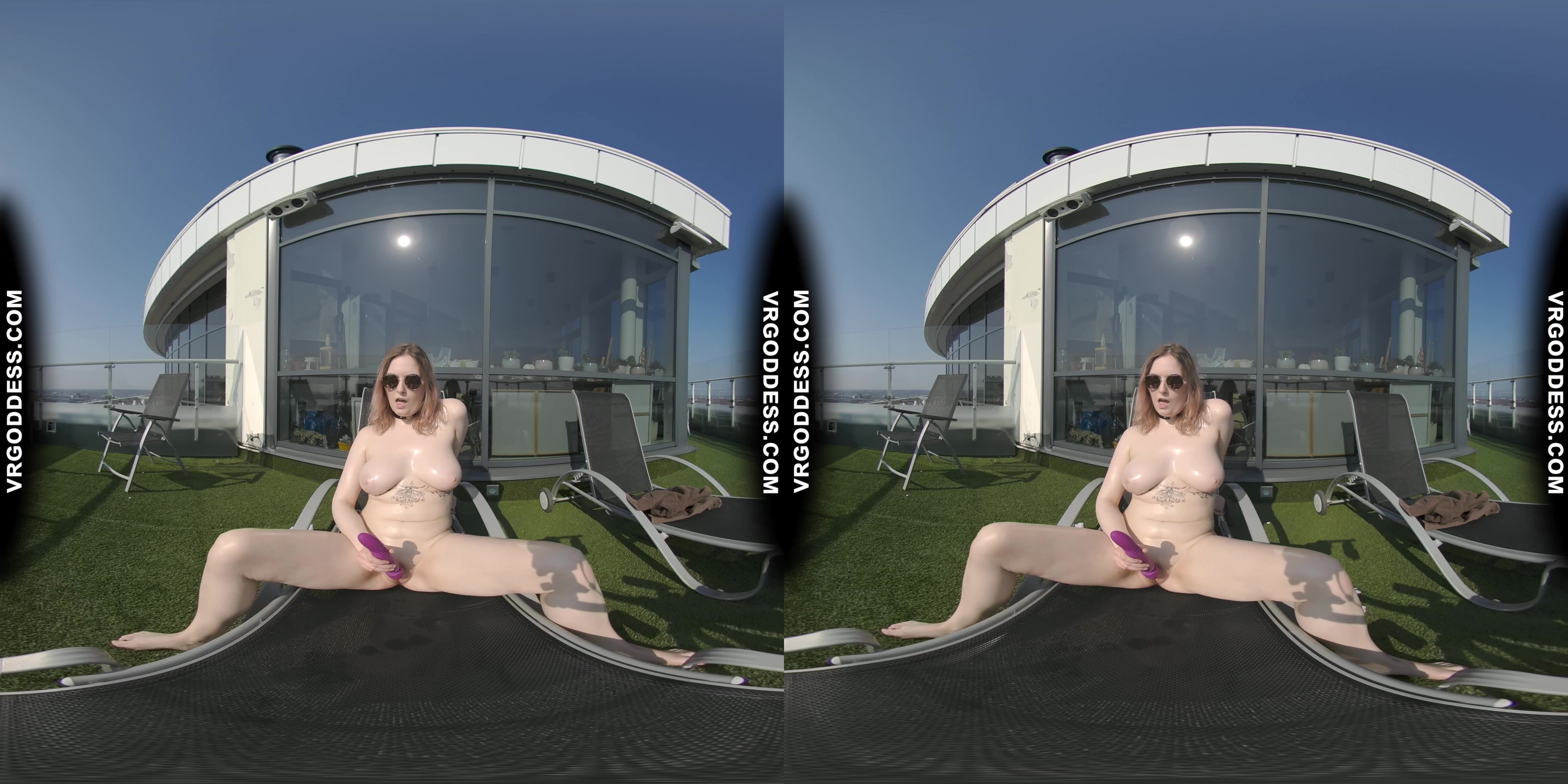Diana Rooftop Masturbating While Sunbathing Oiling Her Huge Double D Tits Then Hitachi Orgasm