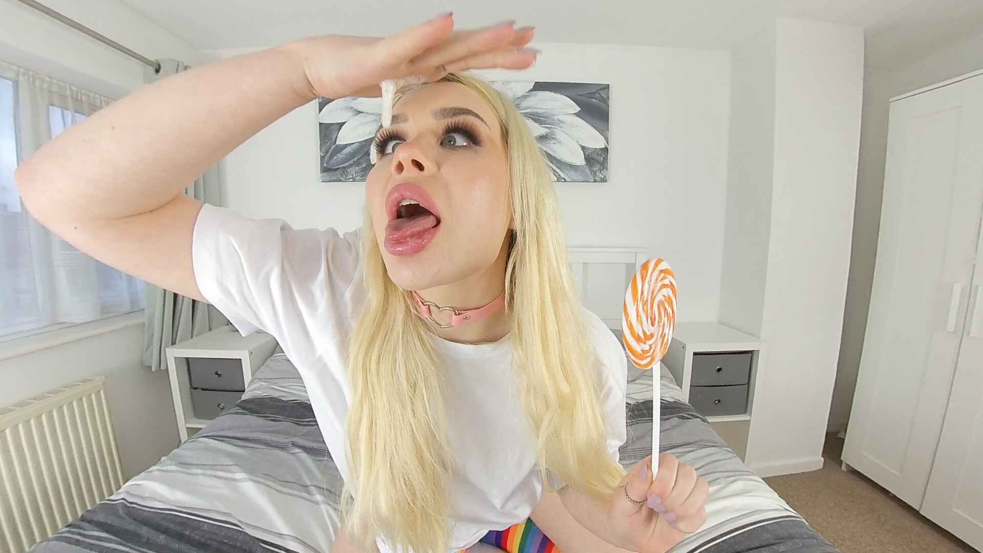 Enjoy a little spit and dribble fetish play with the very sexy Gina Varney, get up close and personal as she licks and sucks her giant lolipop while dribbling and spitting all over her tits. don;t worry though, she’ll find some time to show you her feet and pussy too!