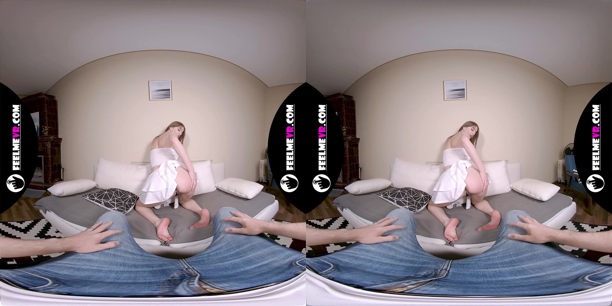 The tension builds as Mary teases, each slow, deliberate move ramping up the heat. When she shifts into a standing tease, showing off those long legs, your heart’s racing, no doubt. Honestly, the way she locks eyes through the VR lens, it’s like she knows exactly how to pull you in deeper.