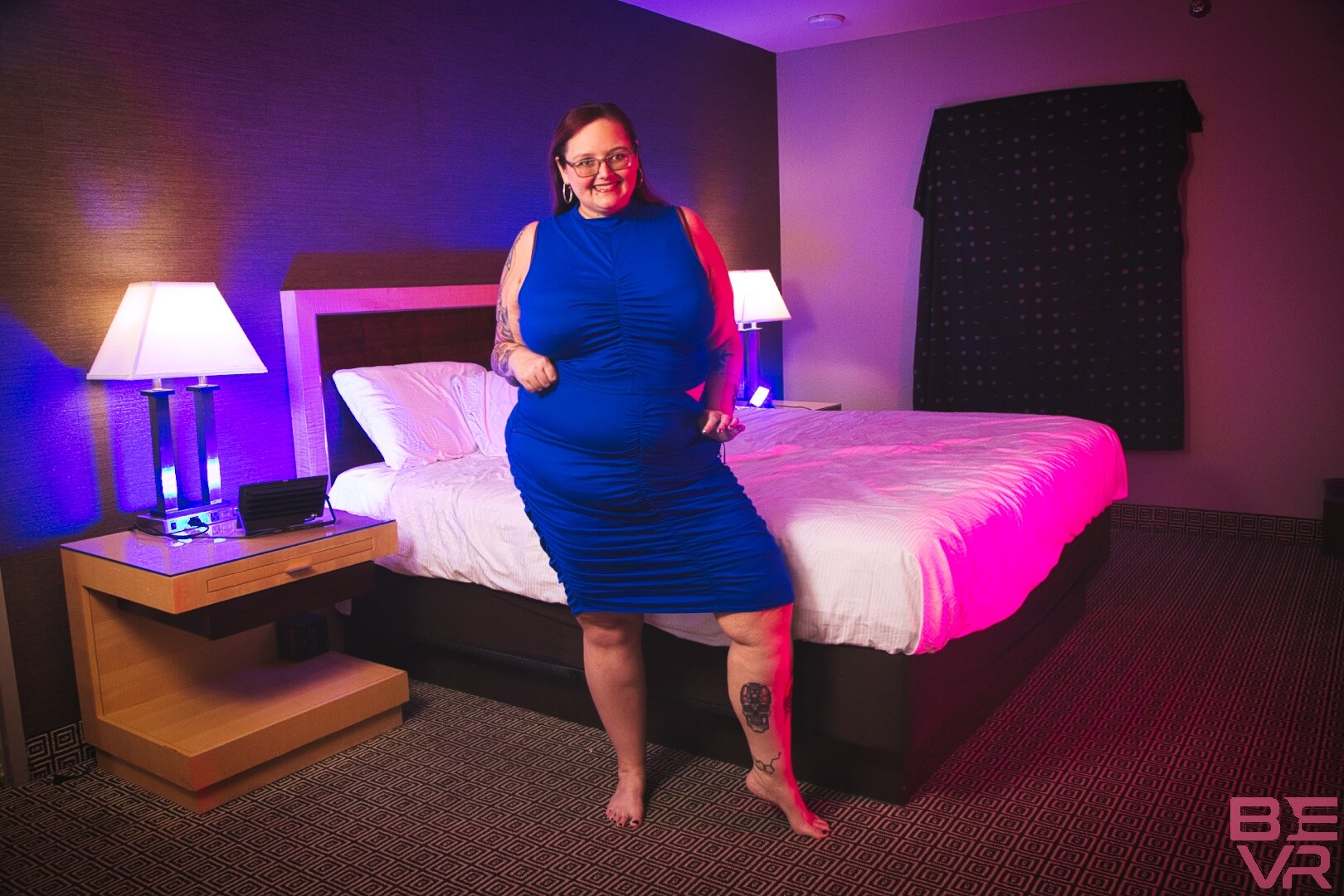 The scene opens with Sara Star sitting comfortably, looking directly at the camera. She's wearing glasses and has a tattoo that adds to her sultry appeal. As she begins to tease herself, you can't help but feel like you're right there with her.