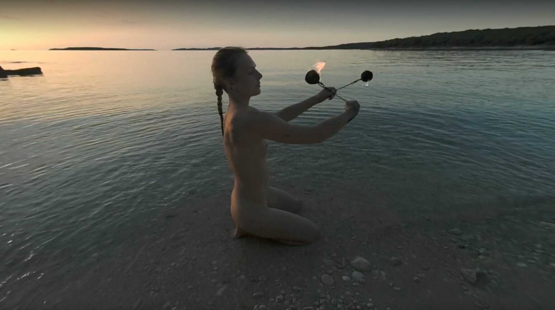 Special Fire Dancing Naked On Sunset Beach Extra Long And Hot With Redhead Lea On Vacation
