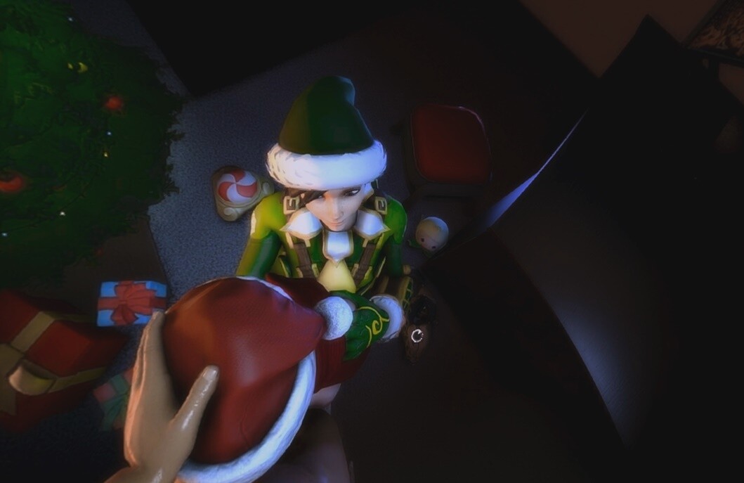 Overwatch Mei and Tracer in Sexy Candy Cane Parody