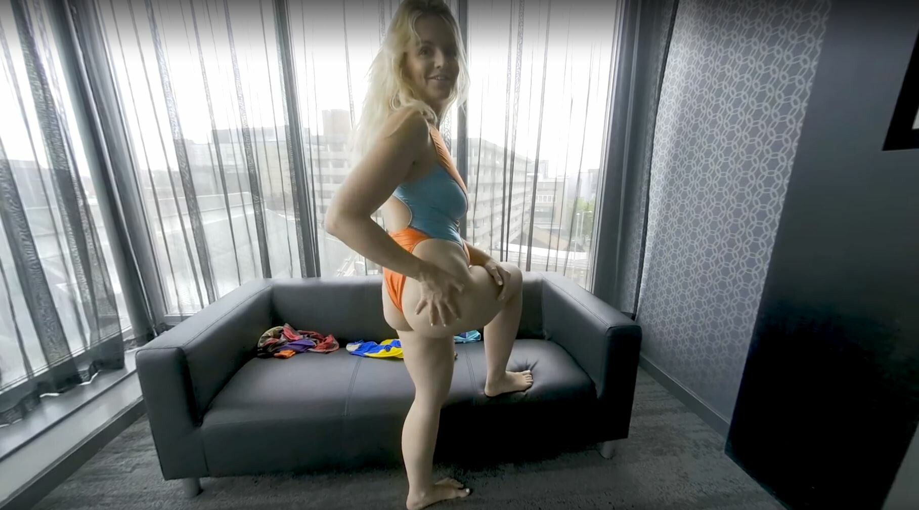 Get ready for an unforgettable experience with Melody Gato as she heats up the screen in a sizzling swimsuit performance. This stunning blonde bombshell is confident, flirtatious, and absolutely gorgeous as she struts her stuff in front of the camera.