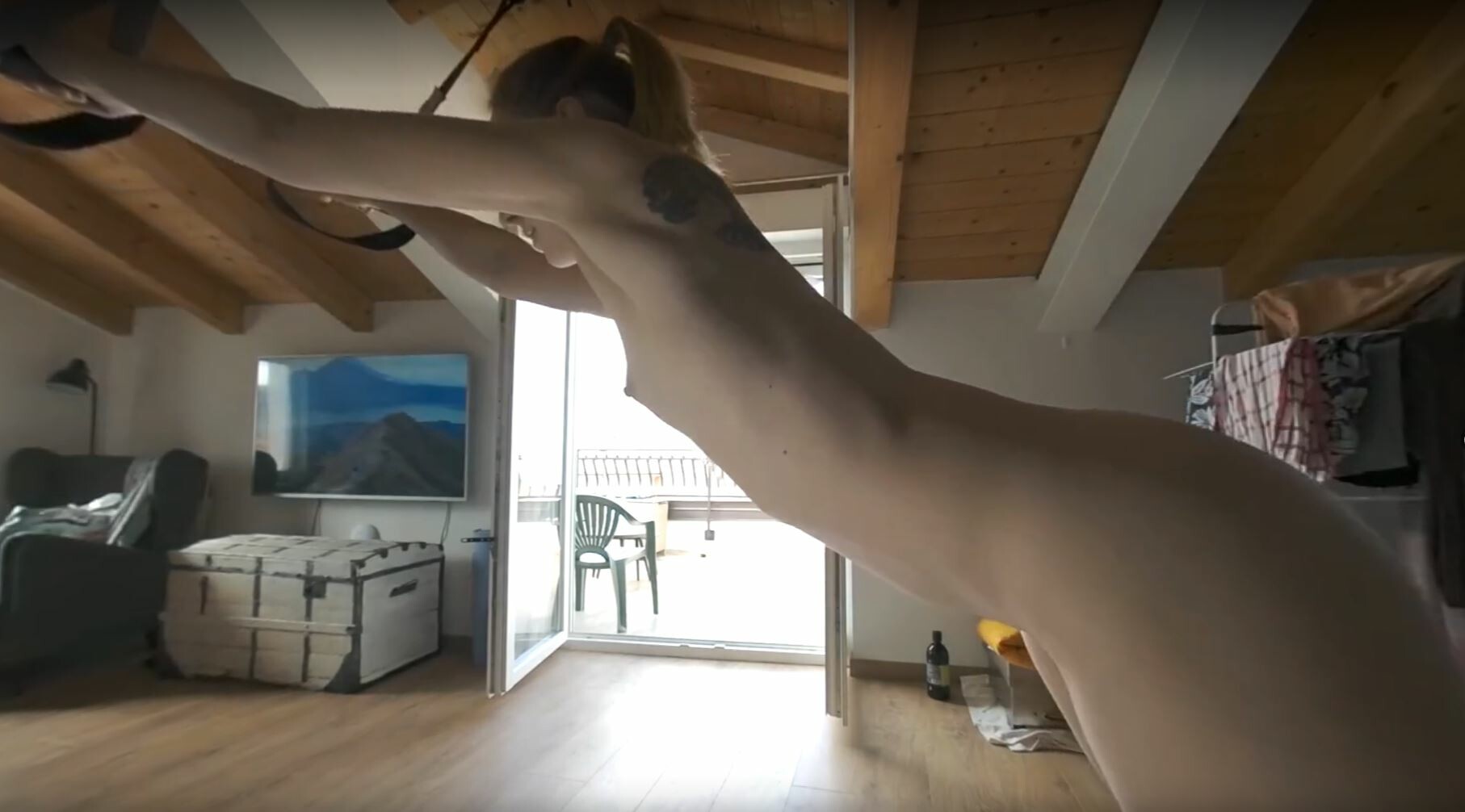 Sporty Ginger Lea On Vacation Working Out Naked