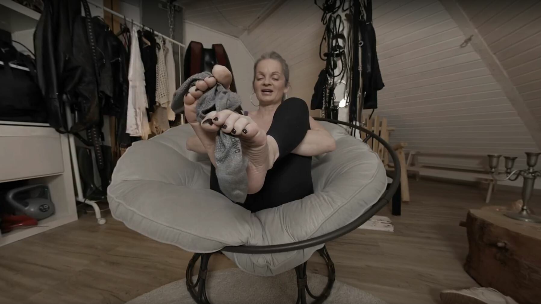 The tension builds quick as Sabdeluxe teases with little moves, her energy shiftin’ from playful to straight-up intense. When she gets into that cowgirl position, holy crap, it’s like the room heats up—her control and rhythm just take over. Then, flippin’ to reverse cowgirl, you feel every pulse, every moment of her confidence stealin’ the show. Honestly, the way she locks eyes through the VR, it’s almost too much.