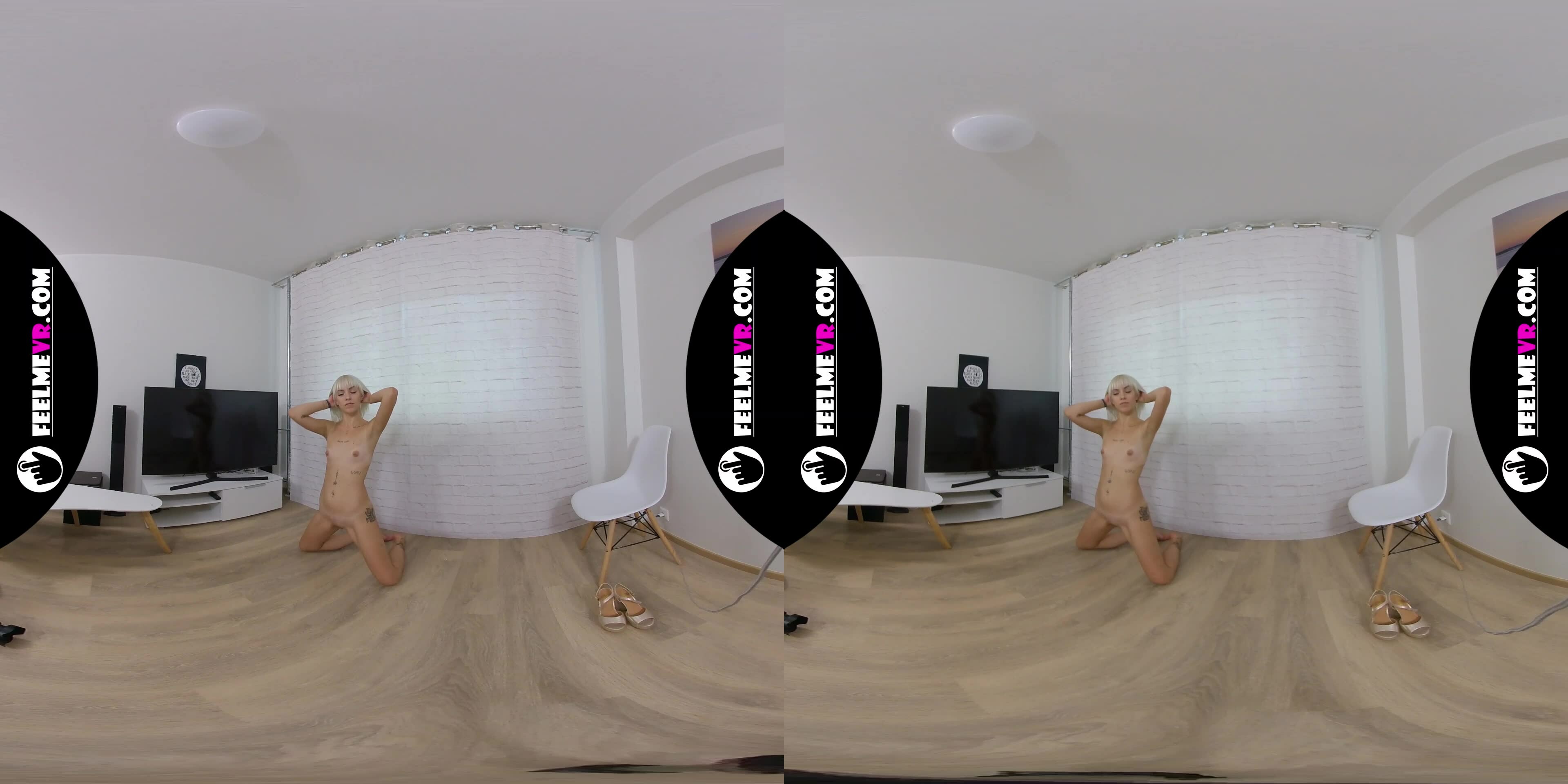 Xenia thin skinny 18yo teenager poses naked VR180 backstage