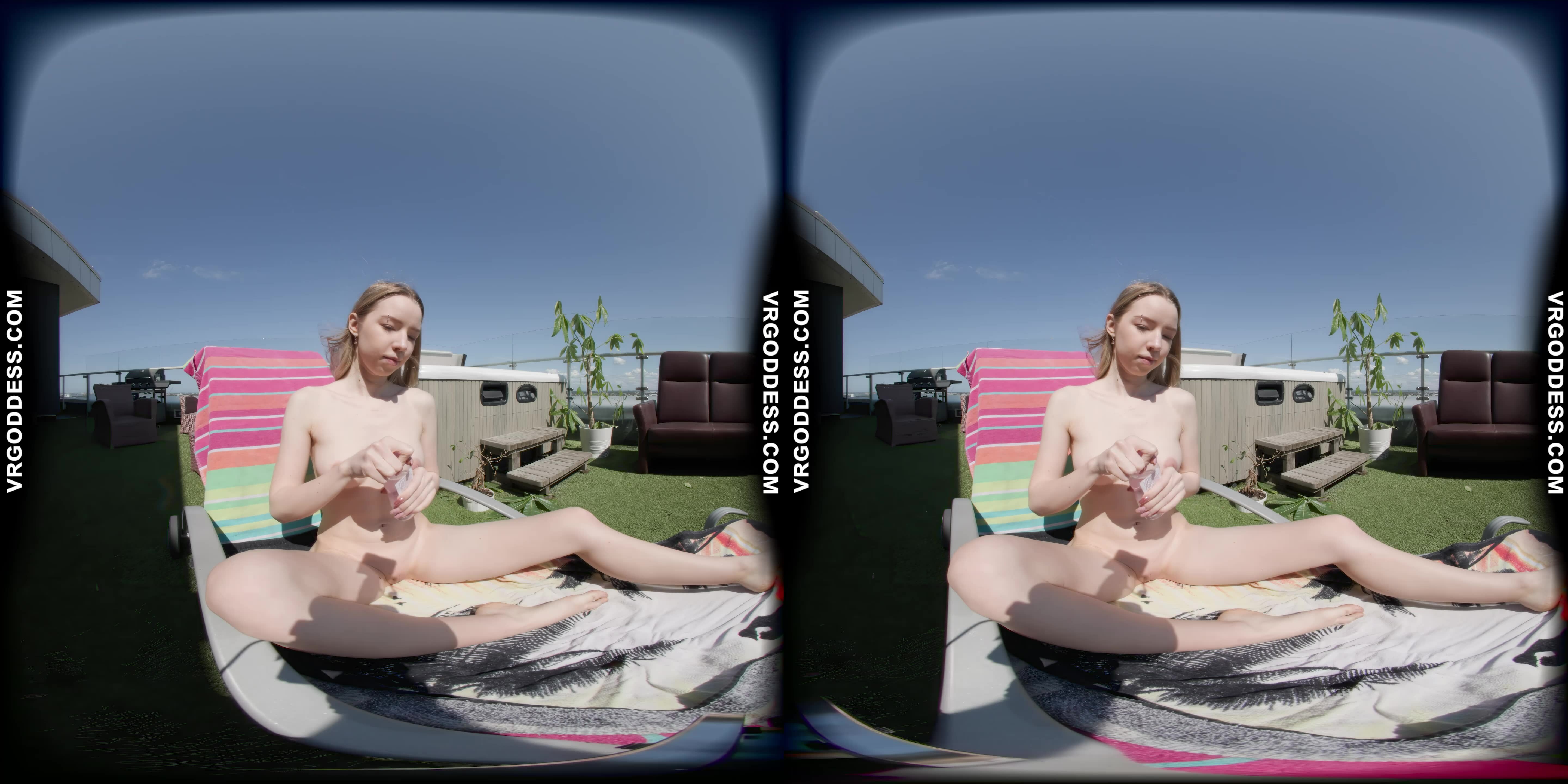 Man, I gotta tell ya, diving into this Kitty Kate outdoor solo scene was like stepping into a damn dream. Right from the start, you see Kitty Kate, glistening under the sun, oiling up her tight, petite frame with such slow, deliberate moves that it’s straight-up hypnotic. I must say, the way she teases with every touch, it’s like she knows exactly how to pull you in.