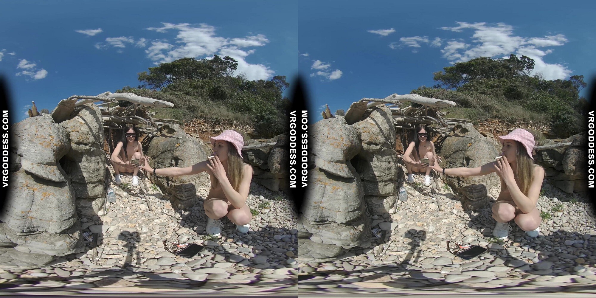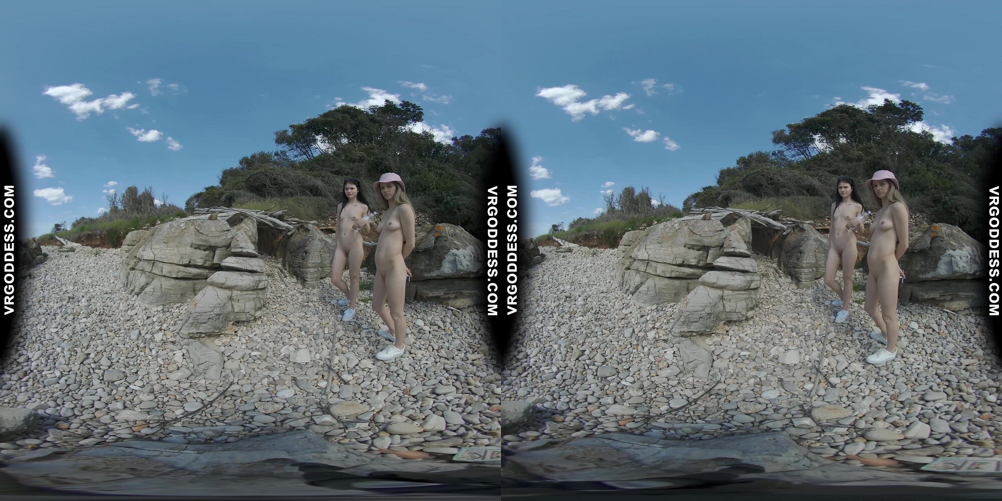 Experience the sultry summer vibes with Josie & Matty Mila Perez in this immersive 8K VR scene. Enjoy the sun-kissed atmosphere as they strip down to nothing but their natural beauty, searching for seashells on the beach while teasing each other. Feel every intimate moment in crystal-clear quality.