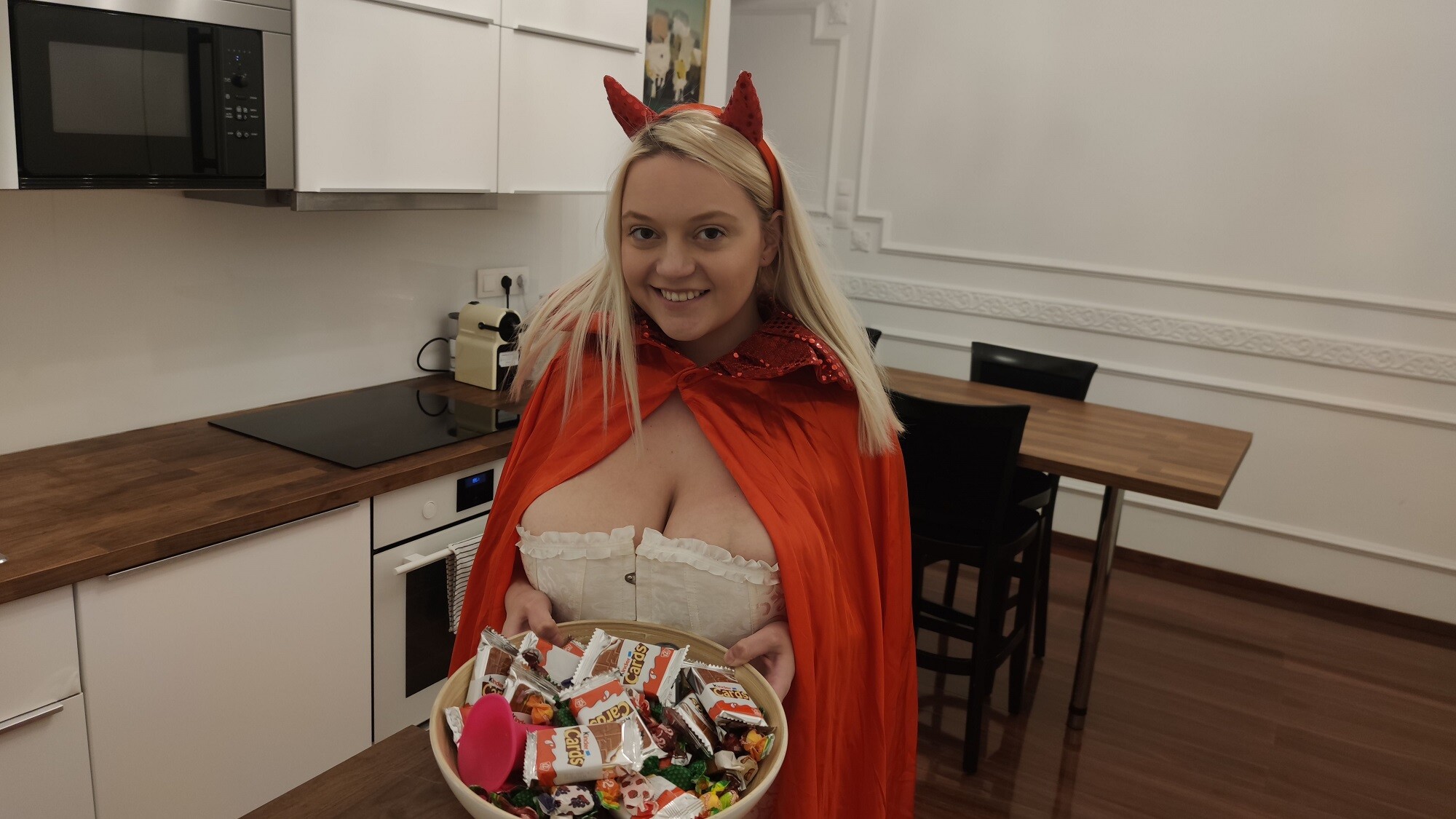 Join us for a thrilling Halloween treat as we delve into the world of Sandra Sweet, the ultimate blonde bombshell. In this exclusive 8K VR video, she takes on two hungry lovers in a wild threesome that will leave you breathless.