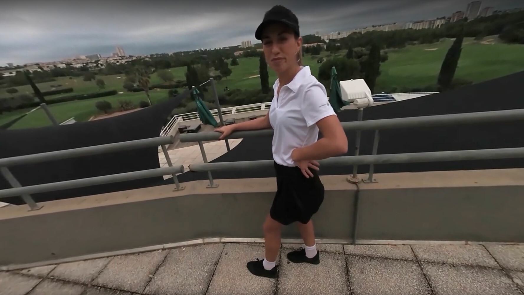 Megane Lopez takes you on a sultry journey in this immersive 4K, 60 Fps VR tease at the 19th hole. As she teases and tantalizes, her natural beauty shines bright through every angle of this 180° capture.