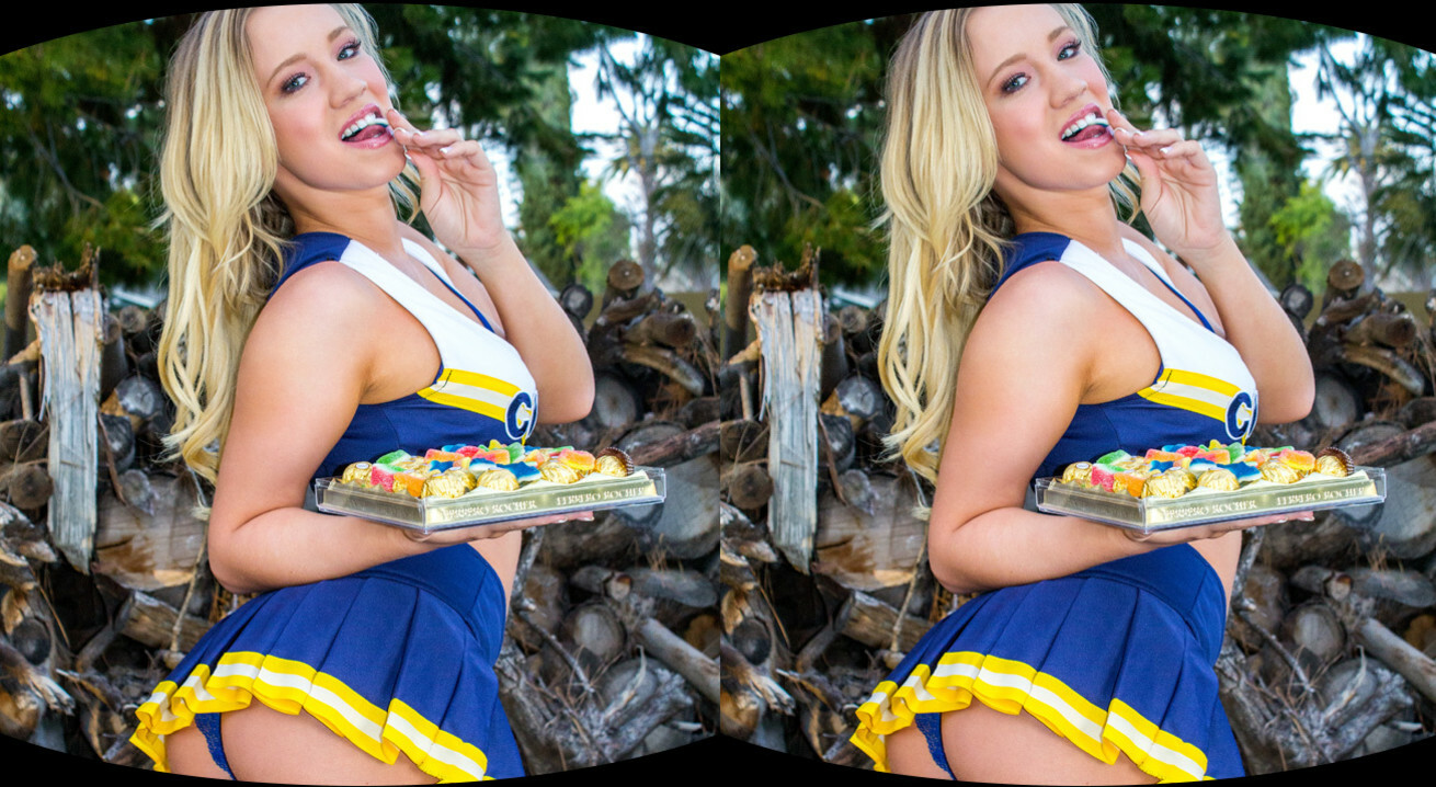 Watch Bailey Base in a thrilling cheerleader VR scene! Experience intense passion in stunning 4K VR, feeling every seductive move. Dive into an immersive fantasy that ignites pure excitement!