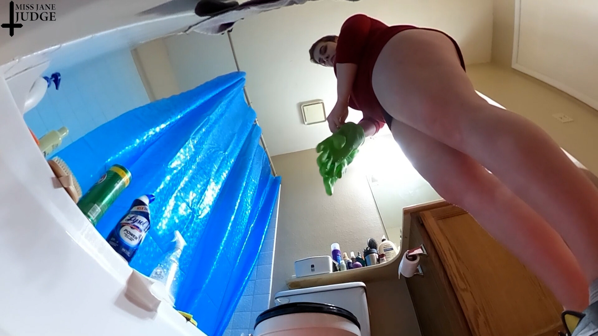 Jane is ready to get some work done, totally unaware that you’re hiding around her bathroom watching! She doesn’t see you on the countertop while she wipes down the mirrors, her big tits swaying as...