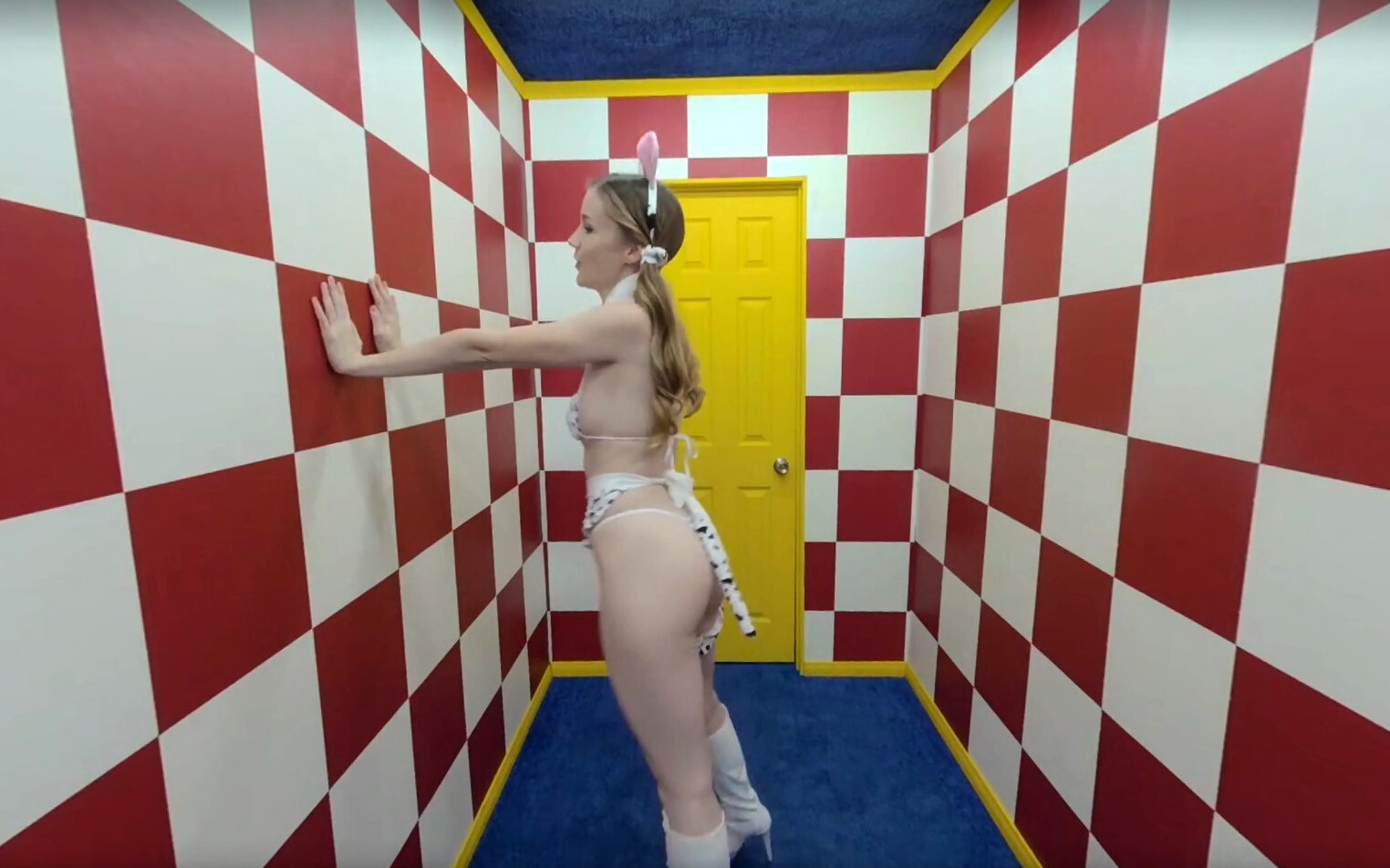 Get ready with Emily Bloom as she tries on different lingerie in this sexy virtual reality video. Which one is your favorite?