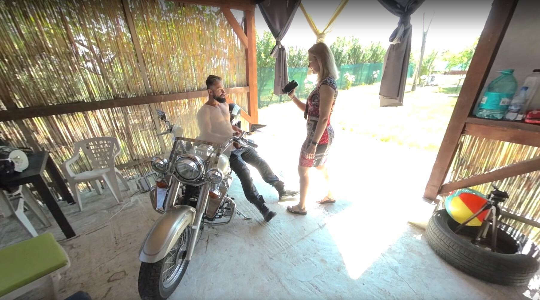 Sarah Kay ignites passion in this thrilling motorcycle scene. Experience intense outdoor action in stunning VR, feeling every seductive moment and rush of excitement.