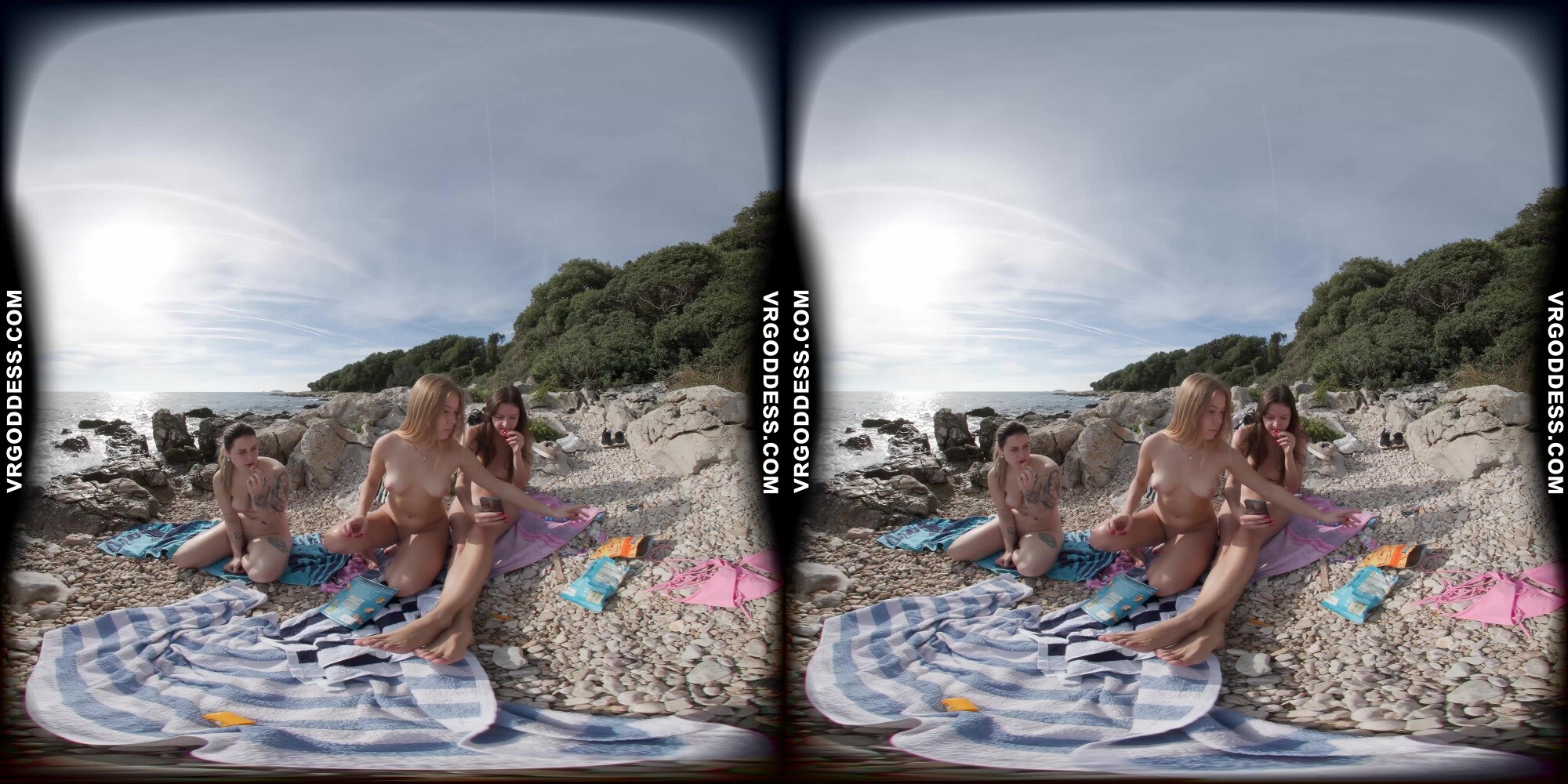 Man, I gotta tell ya, diving into this VR scene with Kristina, Emmux, and Rebeka Ruby is like stepping into a whole other world. Right from the start, you’re at this nude beach picnic, and the vibes are just electric. Kristina’s got this playful smirk, and the way she interacts with Emmux and Rebeka, it’s like they’re pulling you into their little circle of fun under the sun.