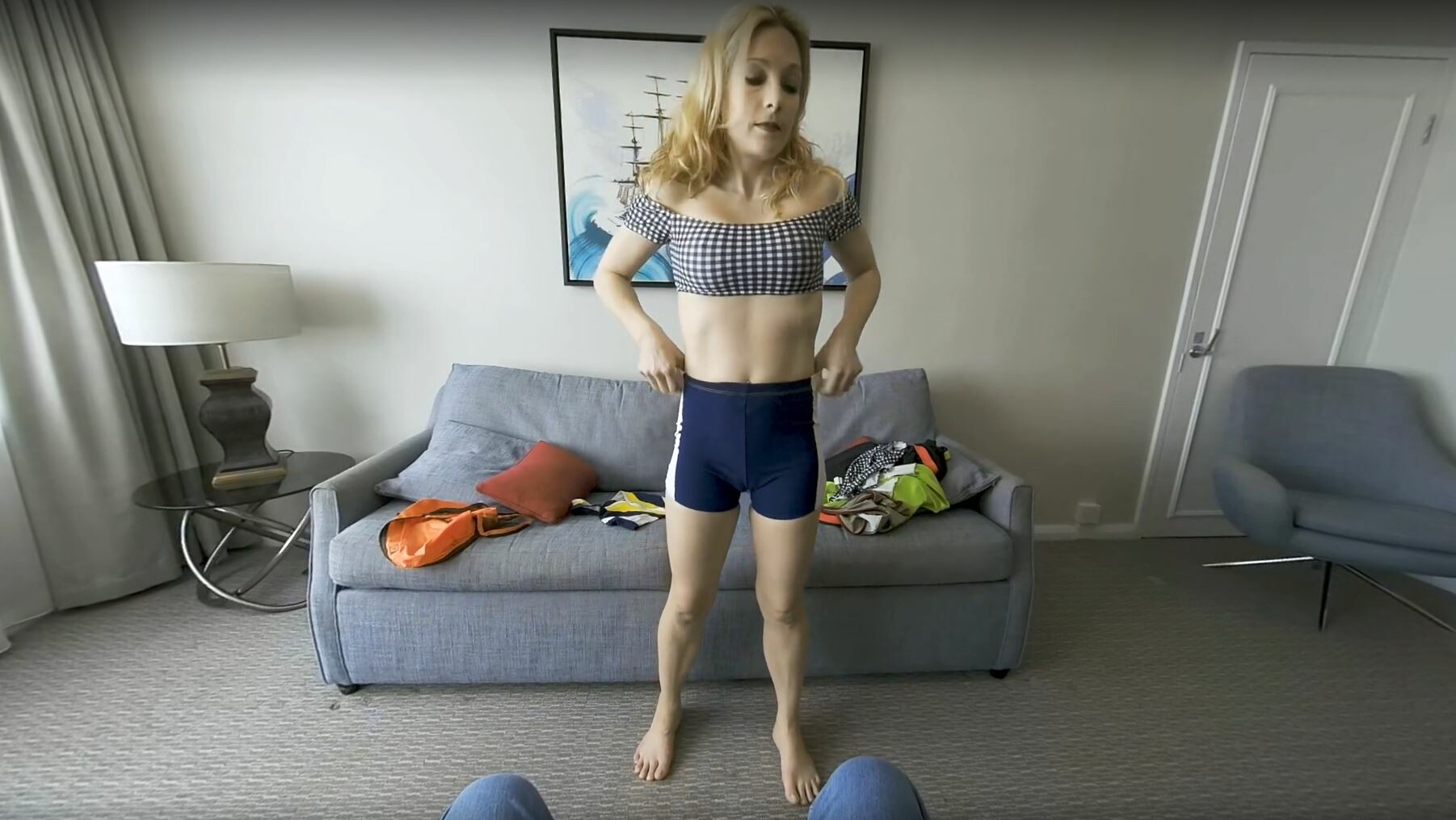 Blonde mesmerizes in a steamy swimsuit twerk session. Dive into this VR solo tease with seductive moves that captivate. Feel the heat and thrill!
