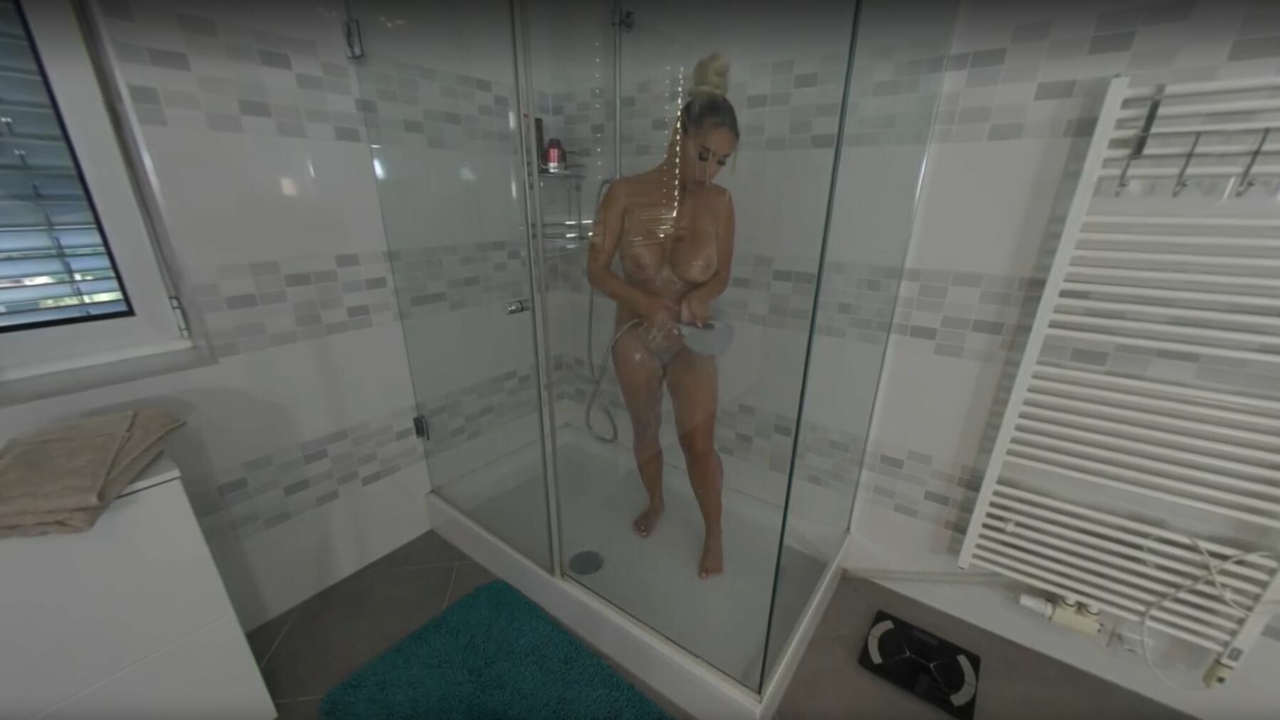 Man, I gotta tell ya, diving into this VR scene with Cassandra Pentaghast is like stepping into a forbidden fantasy. Right from the start, you’re a sneaky voyeur, catching her in a steamy shower, water cascading over her oiled-up curves. It’s pure heat, and the immersive VR makes every droplet feel real.