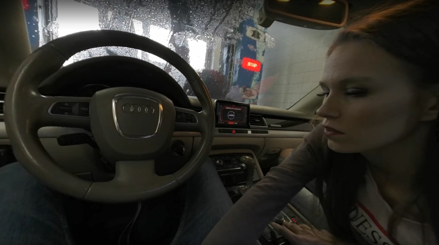 In this new video, you meet the hitchhiker Olivia, who wants to take you to the train, but first, you go to the car wash together, and she gives you a blowjob, but the wash is short, and you need more...